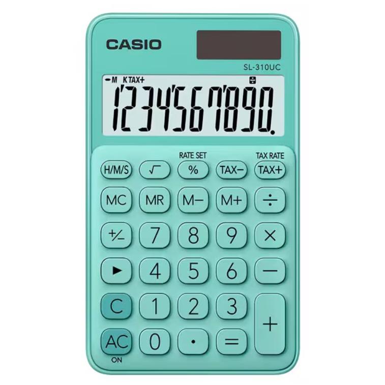 💚 Calculadora Casio SL-310UC verde, 10 dígitos. Eficiencia y estilo en formato compacto.