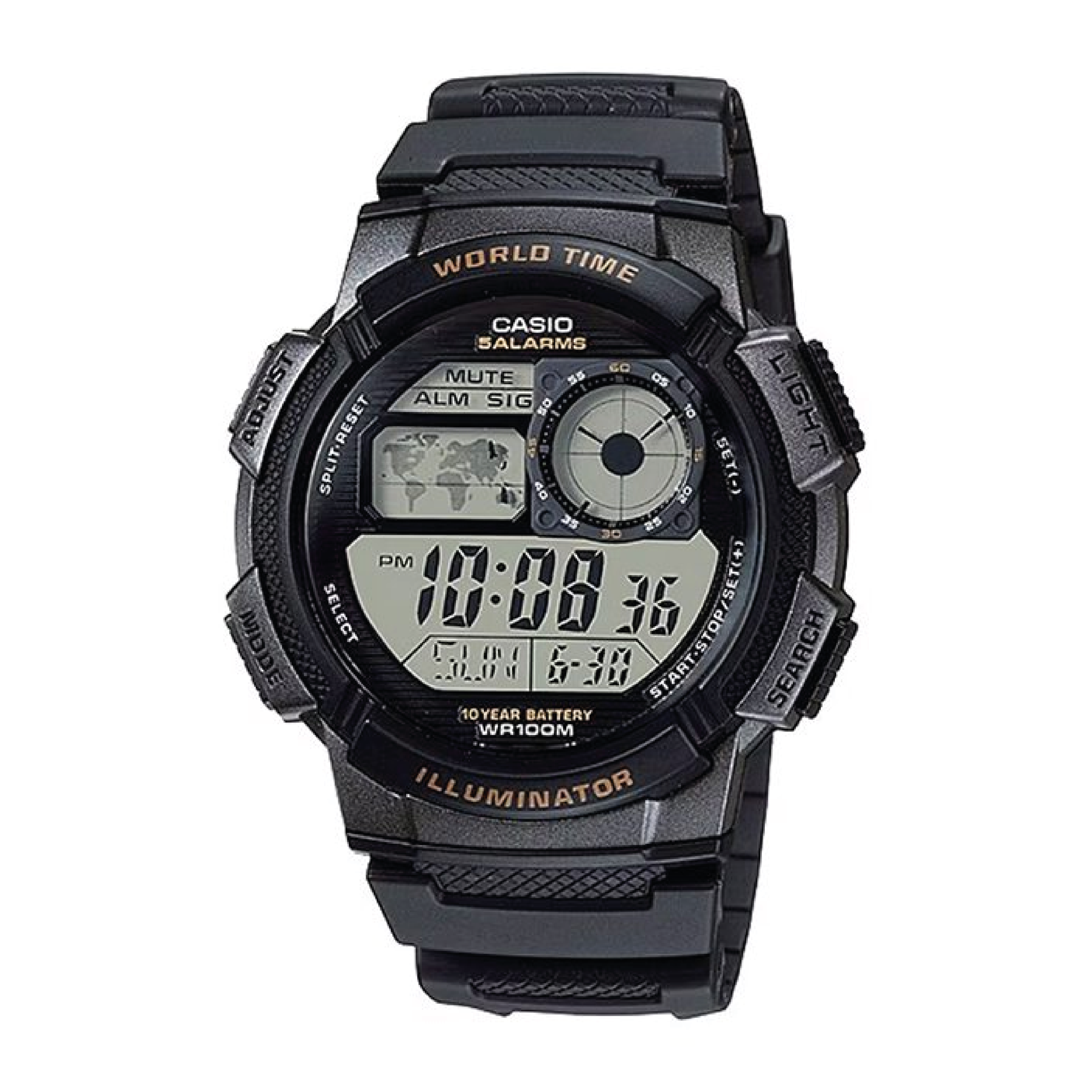 El Casio AE-1000W-1AV es la herramienta definitiva para quienes ven el mundo sin fronteras. Su característica más distintiva es el mapa mundial incorporado, que resalta la zona horaria seleccionada, permitiéndote navegar entre 31 zonas diferentes de manera intuitiva y rápida.