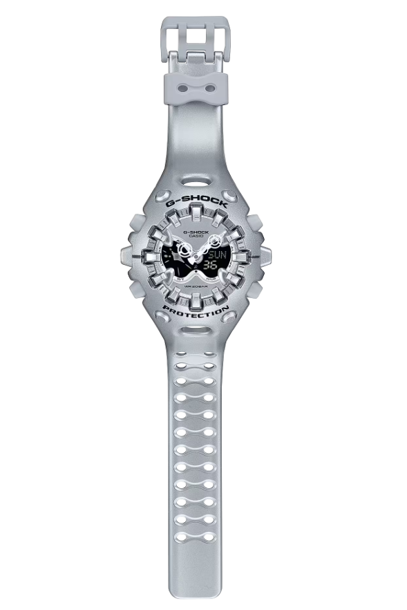 El GA-V01A-8A destaca por su estética robusta y moderna en tono gris urbano, ideal para quienes buscan un reloj con carácter fuerte y estilo contemporáneo. Su diseño combina líneas agresivas con un acabado sobrio que lo hace versátil tanto para el uso diario como para outfits más deportivos o urbanos.