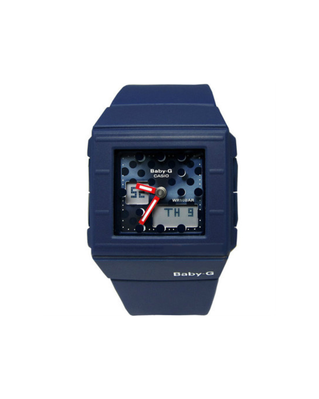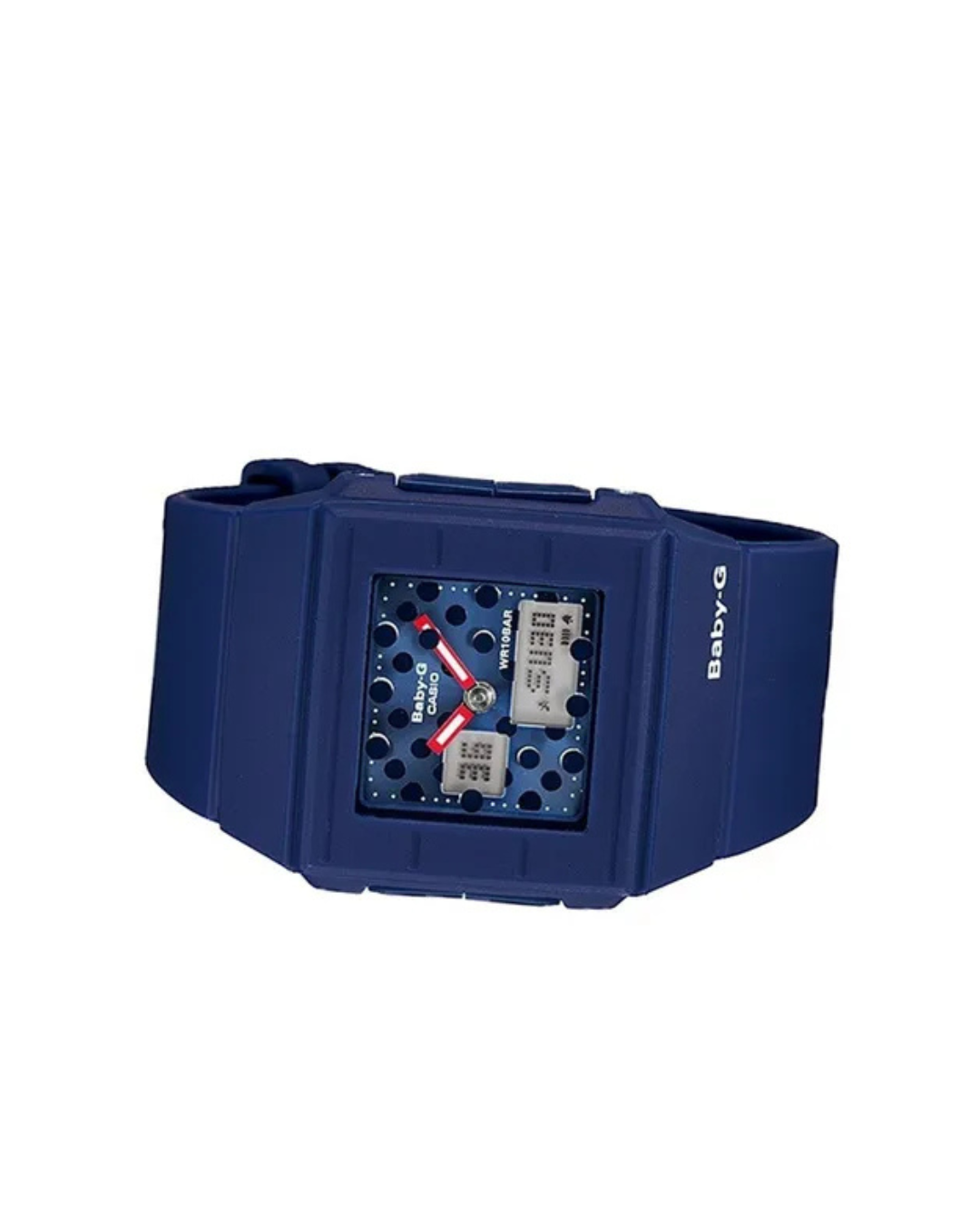 El Casio Baby-G BGA-200DT-2E presenta un diseño deportivo en tono azul con detalles en contraste que le aportan un estilo moderno y urbano. Su estética incorpora un patrón decorativo dinámico en la esfera que genera un efecto visual cambiante según la luz, junto con un formato analógico-digital que aporta profundidad y carácter.